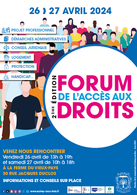 La Ville organise la deuxième édition du Forum de l’accès aux droits, les vendredi 26 et samedi 27 avril à la Ferme du Vieux‑Pays. Démarches administratives, conseils juridiques, logement, projet professionnel, handicap… Les Aulnaysiens obtiendront des informations et des conseils sur une multitude de sujets.